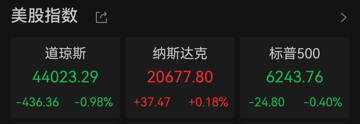 中新经纬7月16日电 美东时间周二亚新T+0配资,美股三大指数涨跌不一,纳斯达克指数续创历史新高。截至收盘,道琼斯工业指数跌436.36点,跌幅0.98%,报44023.29点;纳斯达克指数涨37.47点,涨幅0.18%,报20677.80点;标普500指数跌24.80点,跌幅0.40%,报6243.76点。