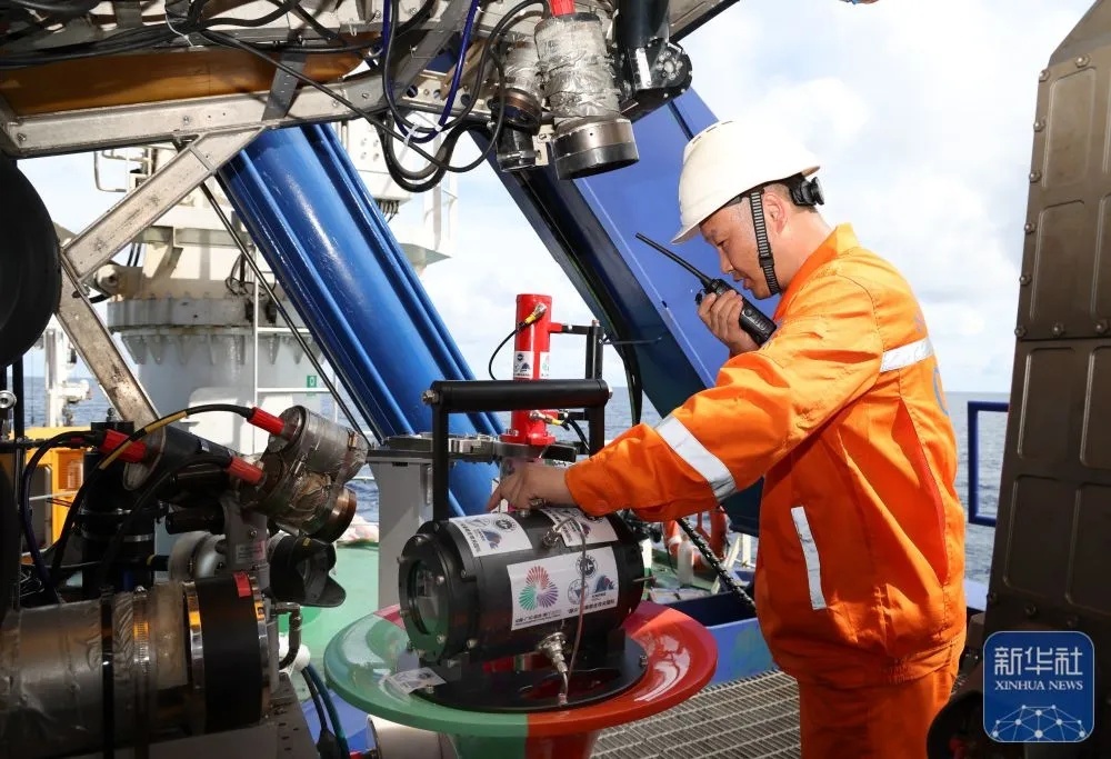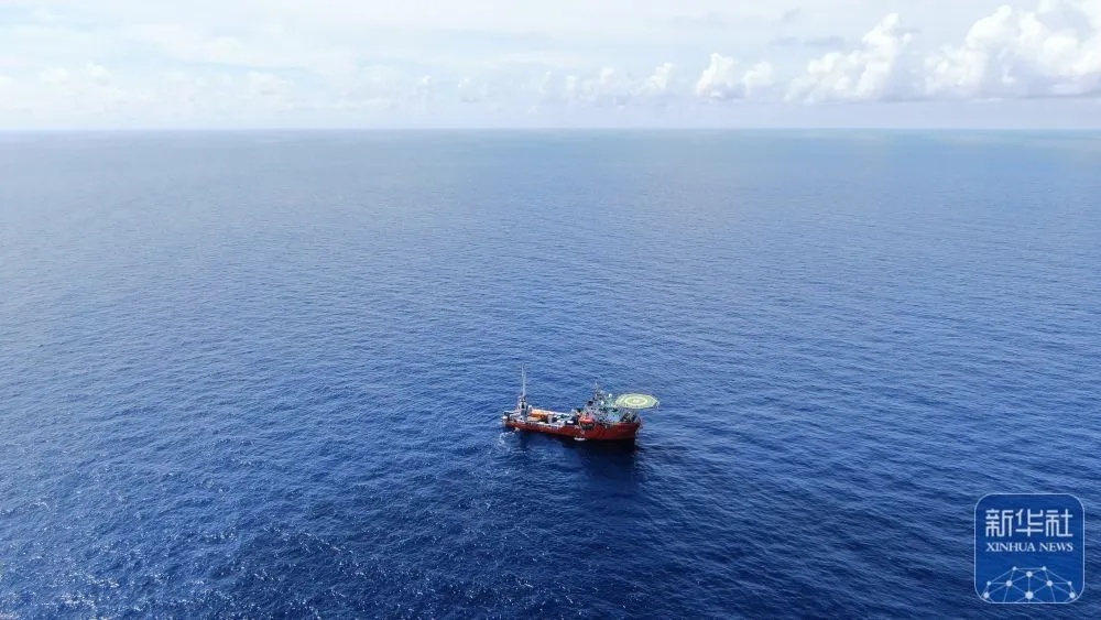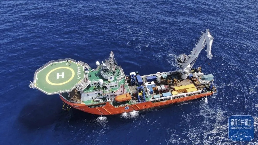 ↑9月18日,“海洋地质二号”科考船搭载“海马”号深海遥控潜水器在南海北部进行“源火”采集。新华社记者 卢汉欣 摄