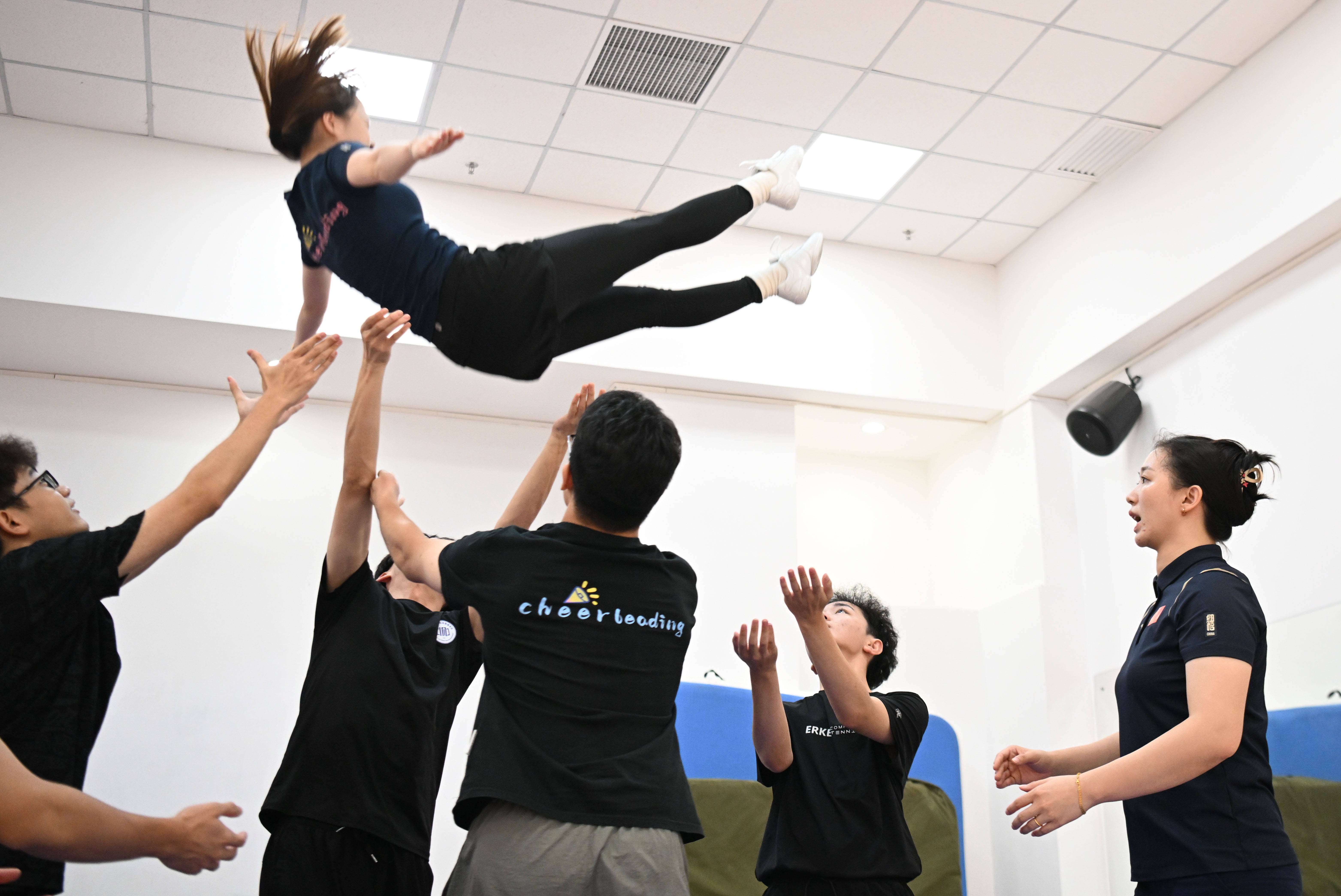 啦啦操队队员在中山大学体育馆体操教室训练(2024年9月5日摄)。新华社记者 邓华 摄这场充满青春气息的消费热潮