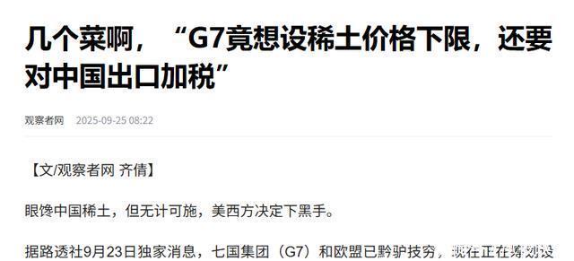 观察者网2025-09-25几个菜啊,“G7竟想设稀土价格下限,还要对中国出口加税”
