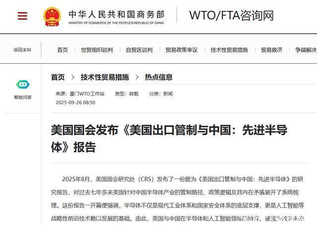 厦门WTO工作站2025-09-26美国国会发布《美国出口管制与中国:先进半导体》报告
