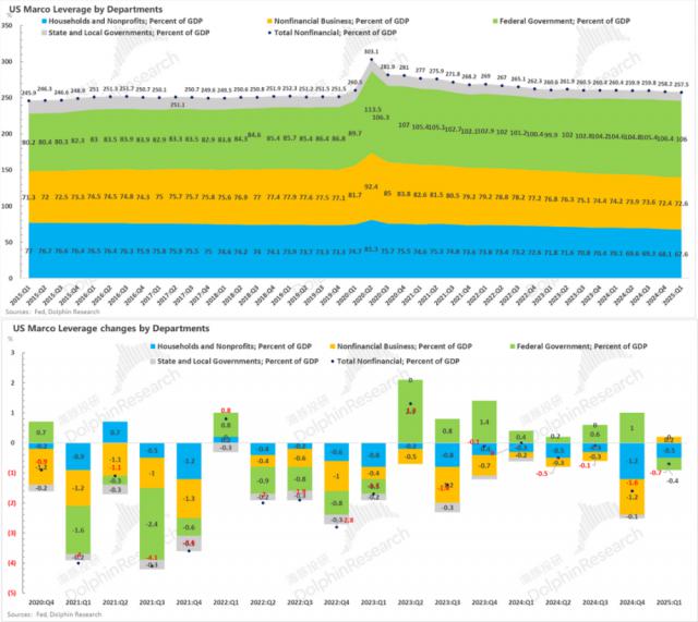 一季度来看,只有非金融企业还在小幅加杠杆,但要他们持续加,或者以更大的力度去加杠杆,其实政策角度能做的就是息税两件事。减税对应的就是《大漂亮法案》,而降息要看美联储的决策。